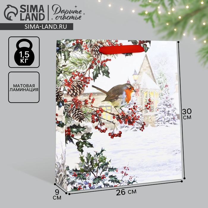 Пакет подарочный новогодний ламинированный «Зимнее утро», M 30 х 26 х 9 см