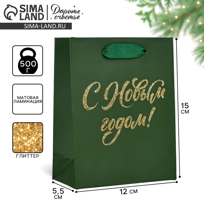 Пакет подарочный новогодний ламинированный «С Новым годом», глиттер, S 12 х 15 х 5.5 см