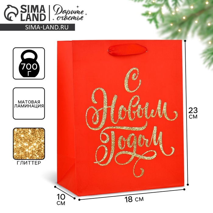 Пакет подарочный новогодний ламинированный «С Новым годом», глиттер, MS 18 х 23 х 10 см