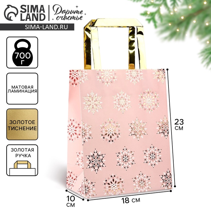 Пакет подарочный новогодний ламинированный «Танец снежинок», MS 23 x 18 х 10 см