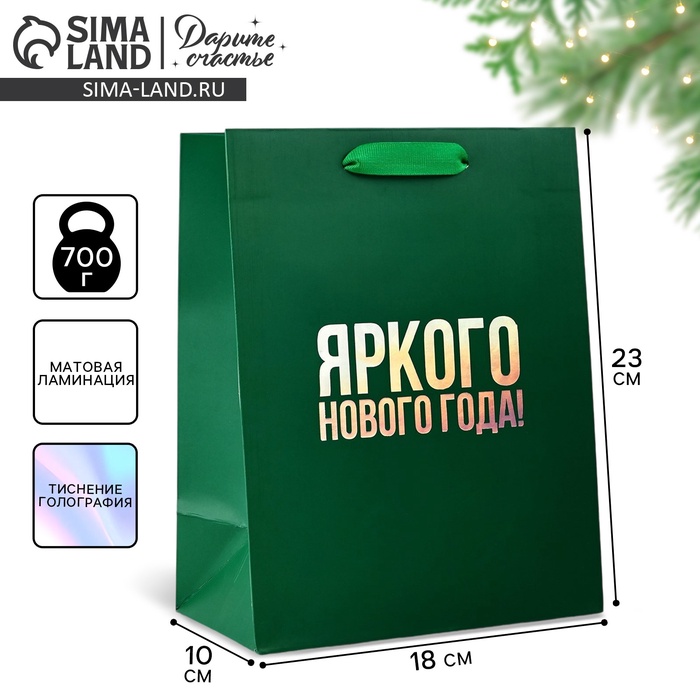 Пакет подарочный новогодний «Яркого Нового года», голография, MS 18 х 10 х 23 см