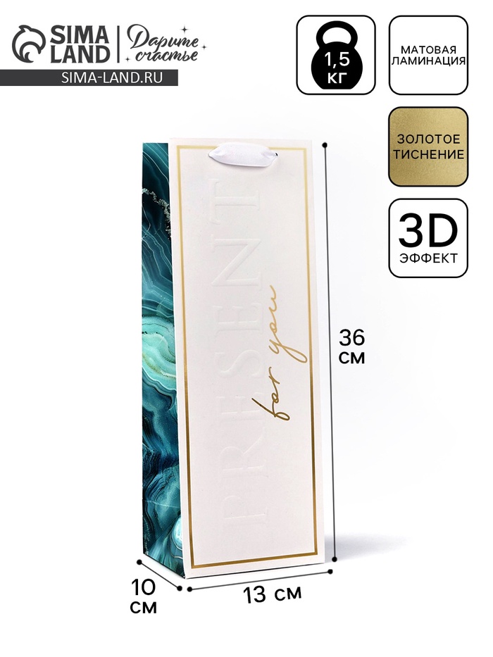 Пакет под бутылку Present for you, 13 х 36 х 10 см