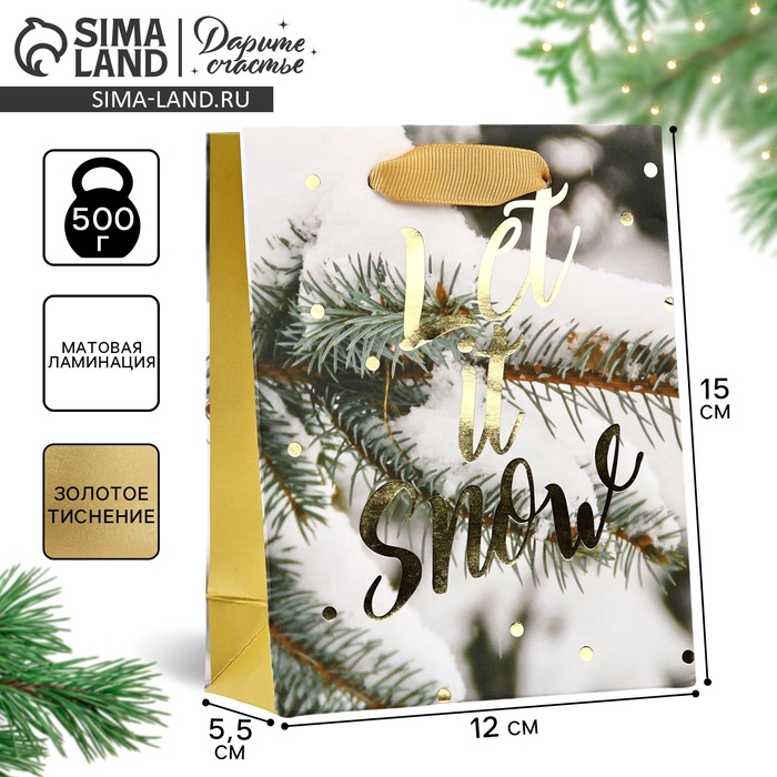Пакет подарочный новогодний ламинированный «Золото», 21 х 30 х 15 см