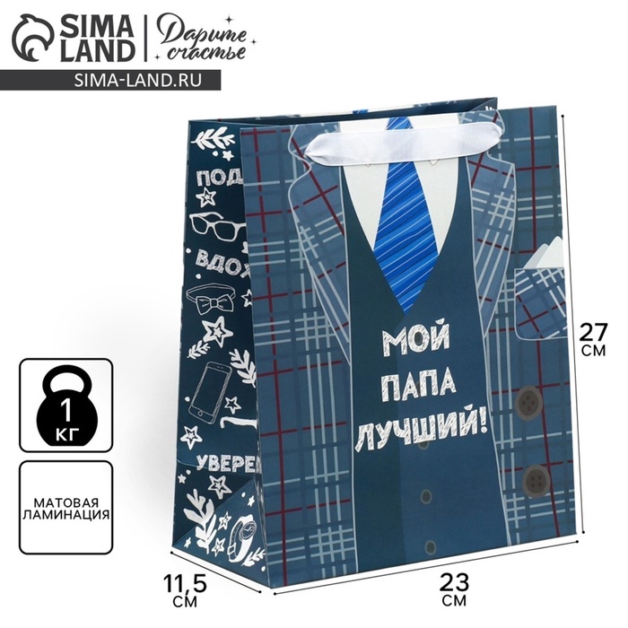 Пакет подарочный ламинированный, упаковка, «Мой папа лучший», ML 27×23×11.5 см
