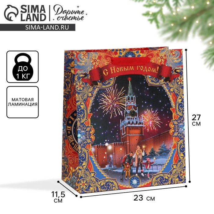 Пакет подарочный новогодний ламинированный «Красная площадь», ML 23 х 27 х 11.5 см