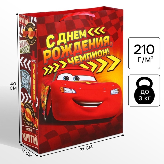 Пакет подарочный «С днём рождения, чемпион!», 31×40×11.5 см
