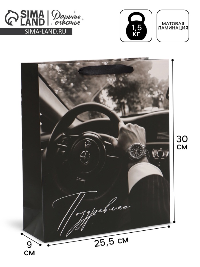 Пакет подарочный «Поздравляю», M 25,5 × 30 × 9 см