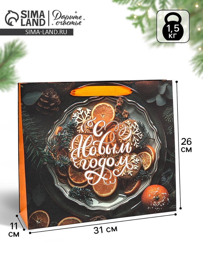 Пакет подарочный крафтовый, «Атмосфера Нового Года», 30×26×9 см