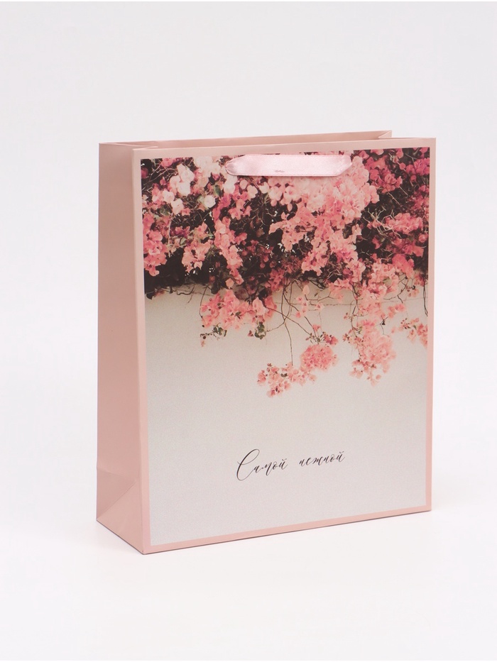 Пакет подарочный вертикальный «Табебуйя розовая», M 25.5×30×9 см