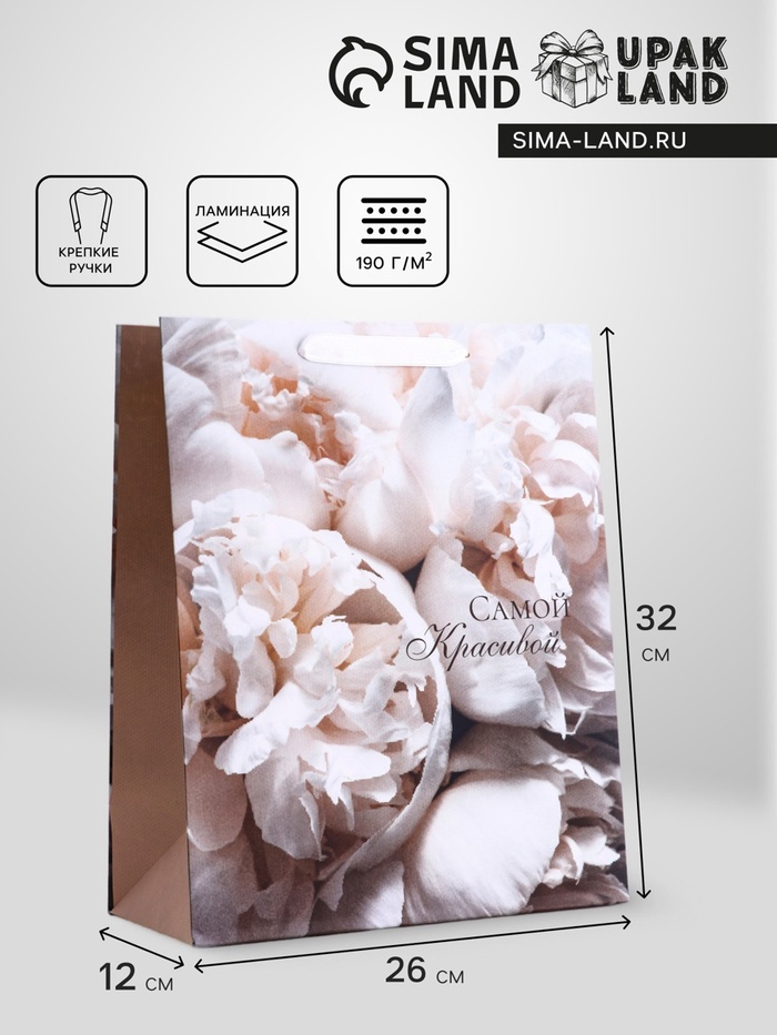 Пакет подарочный вертикальный «Самой красивой», M, 25,5 × 32 × 9 см