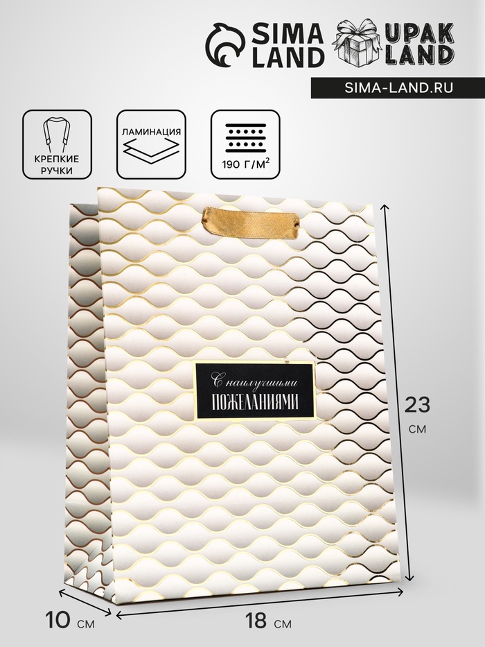 Пакет подарочный вертикальный «С наилучшими пожеланиями», 18×23×10 см