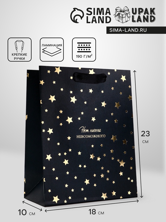 Пакет подарочный вертикальный «Нет невозможного», 18×23×10 см