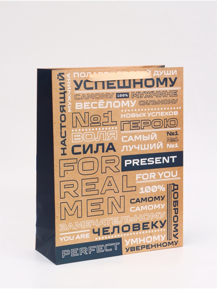 Пакет подарочный вертикальный «Настоящий мужчина», 31×40×14 см