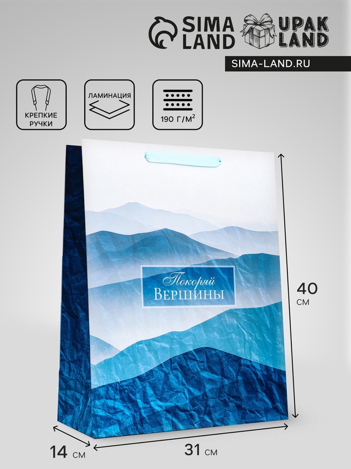 Пакет подарочный вертикальный «Покоряй вершины», 31×40×14 см