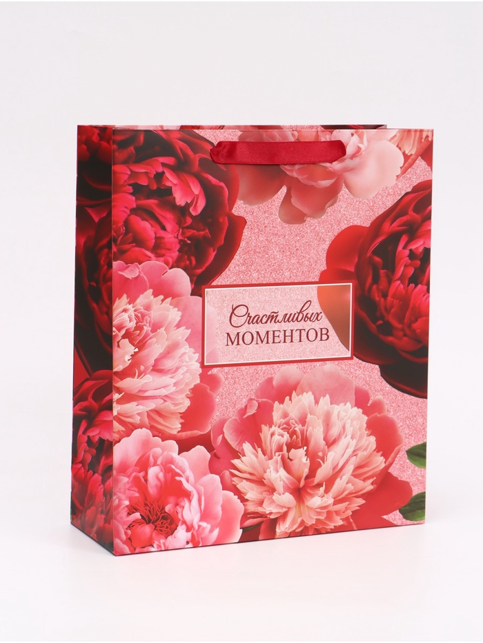 Пакет подарочный вертикальный «Счастливых моментов», 25.5×30×9 см