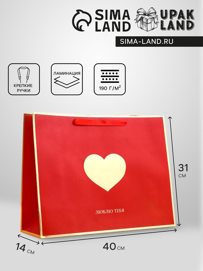 Пакет подарочный горизонтальный «Люблю тебя», L, 40×31×11.5 см