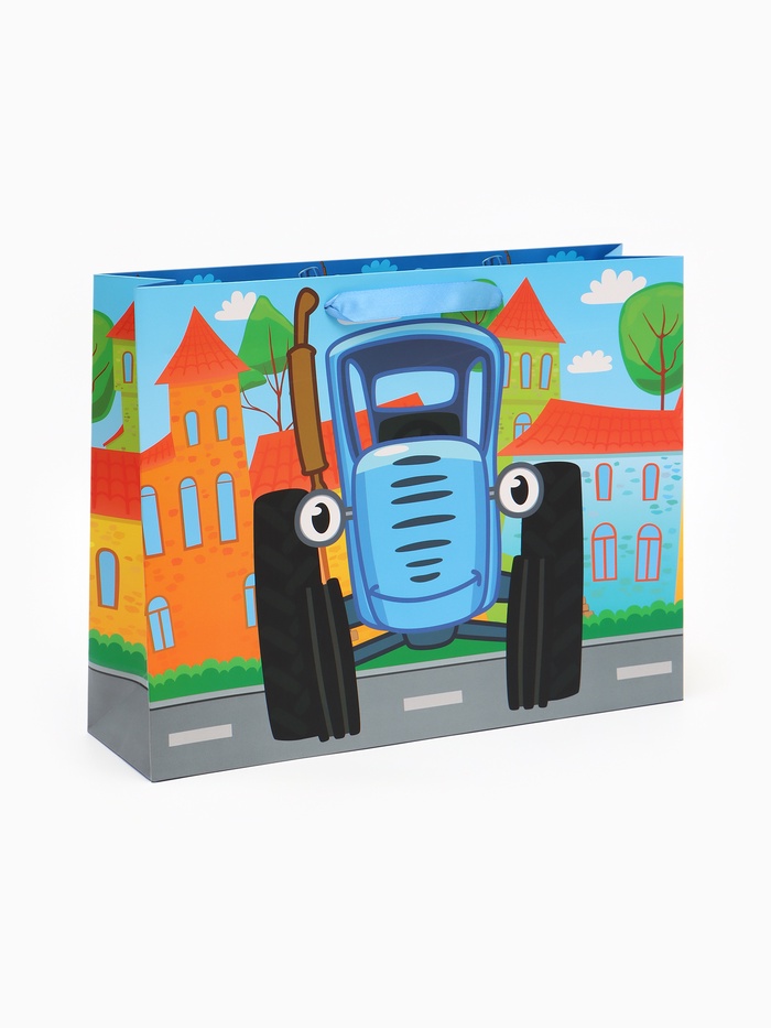 Пакет подарочный ламинированный 40×31×11.5 см, Синий трактор