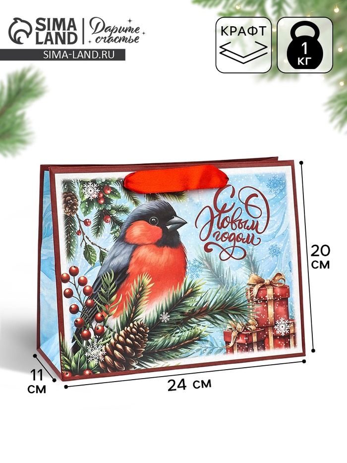 Пакет подарочный крафтовый, «С Новым Годом», 23×18×10 см