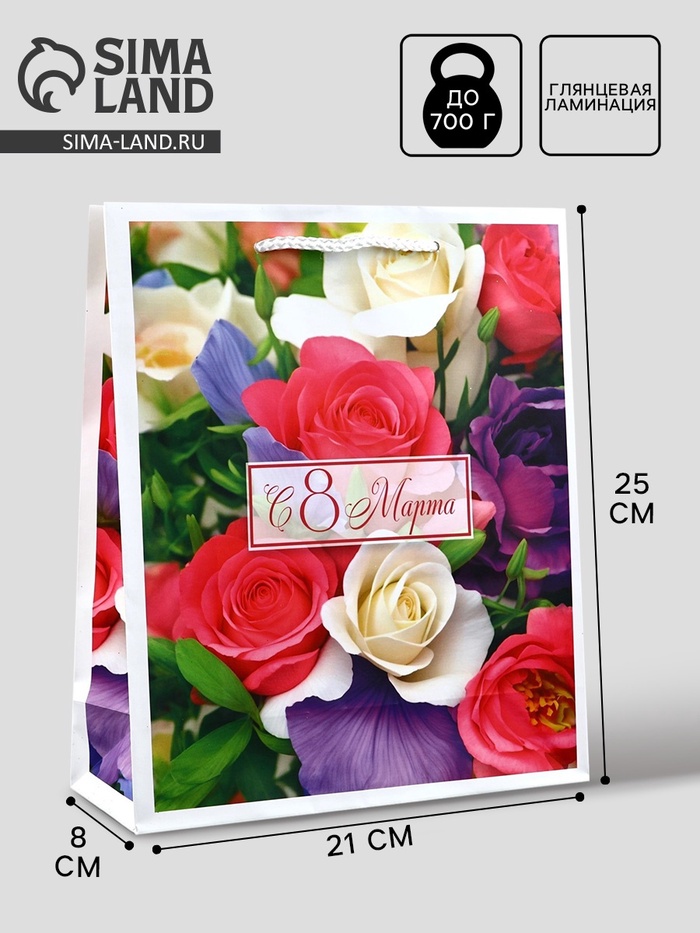 Пакет подарочный ламинированный «С 8 марта», ML 21×25×8 см