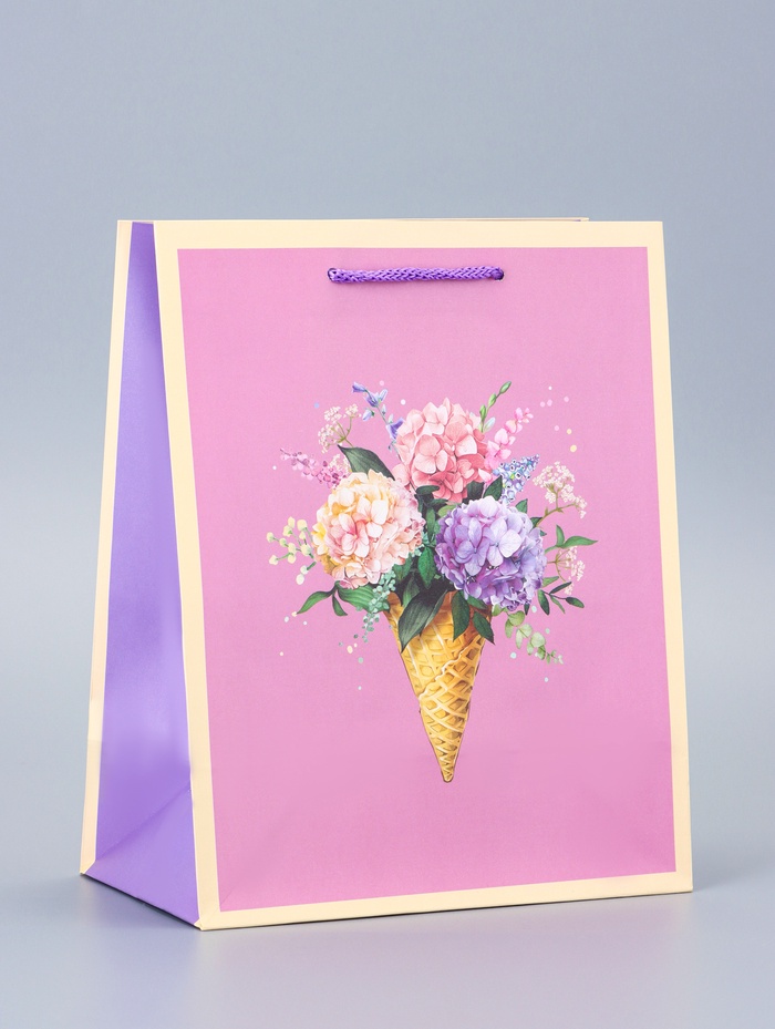 Пакет подарочный ламинированный «Цветочная радость» 18×22.3×10 см
