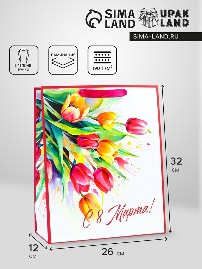Пакет подарочный ламинированный вертикальный «Гармония цветов», 26×12×32 см