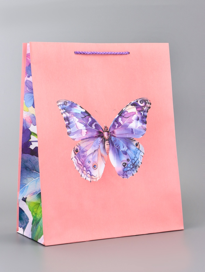 Пакет подарочный ламинированный вертикальный «Портрет бабочки» 26×12×32 см