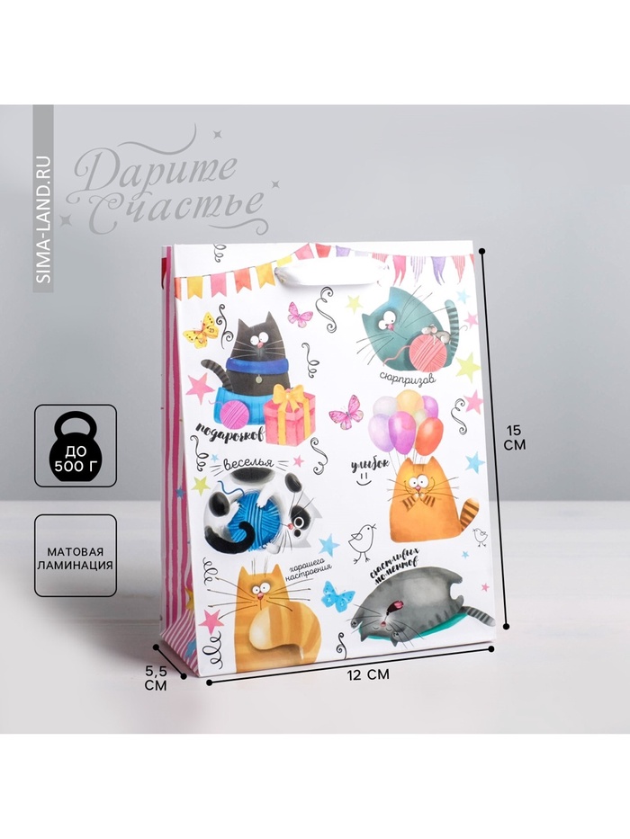 Пакет подарочный ламинированный, упаковка, «Котики», 7×10×7 см