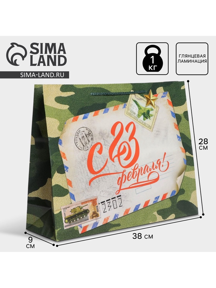 Пакет подарочный ламинированный, упаковка, «С 23 февраля», L 28×38×9 см