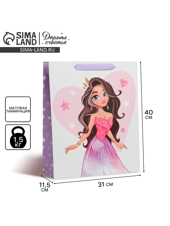 Пакет подарочный ламинированный, упаковка, «Принцесса», L 31×40×11.5 см