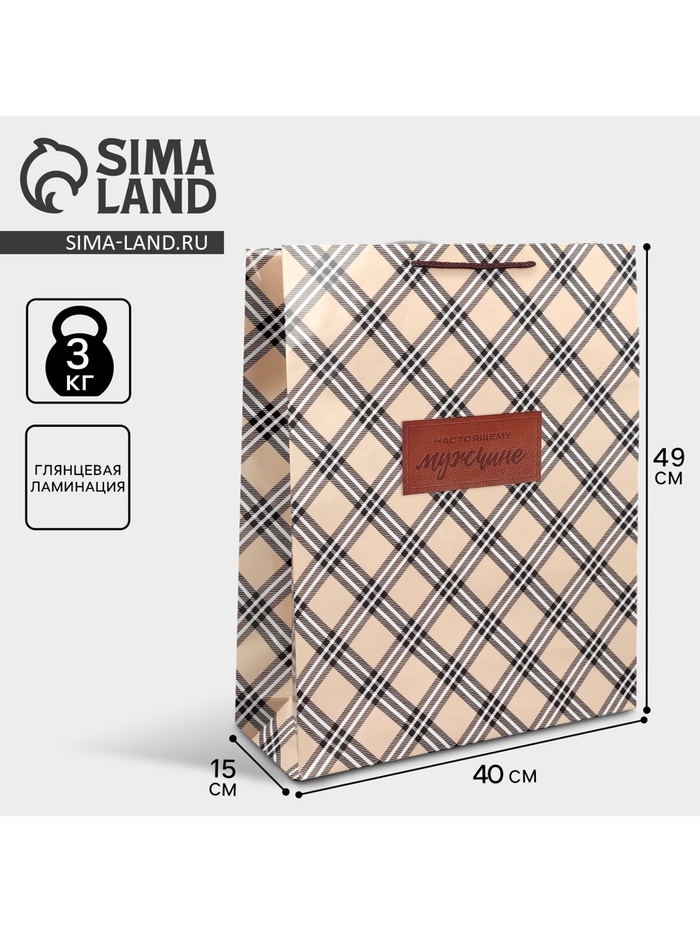 Пакет подарочный ламинированный, упаковка, «Настоящему мужчине», XL, 40×49×15 см