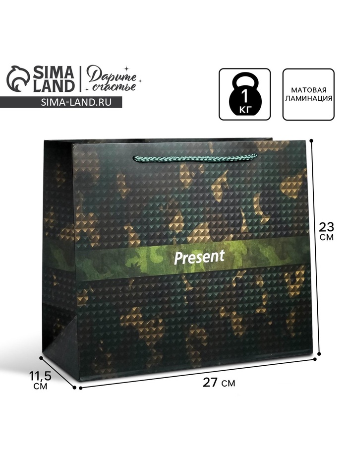 Пакет подарочный ламинированный, упаковка, «С 23 февраля», ML 27×23×11.5 см