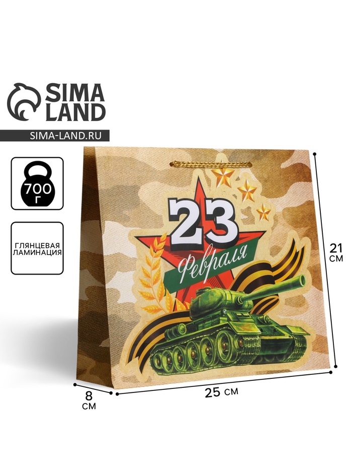 Пакет подарочный ламинированный, упаковка, «С 23 февраля», ML 21×25×8 см