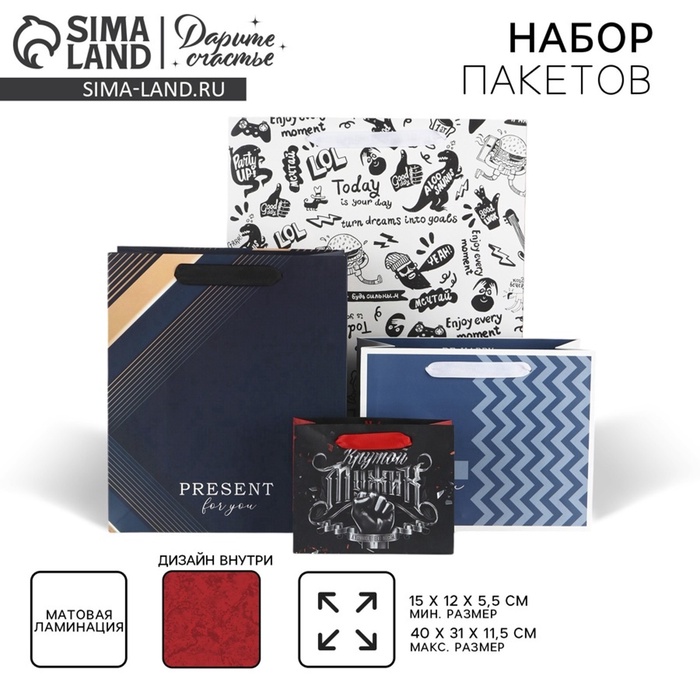 Пакеты подарочные ламинированные, двухсторонние, упаковка, «Мужчины с Марса» 12×15×5.5 см ‒ 40×31×11.5 см