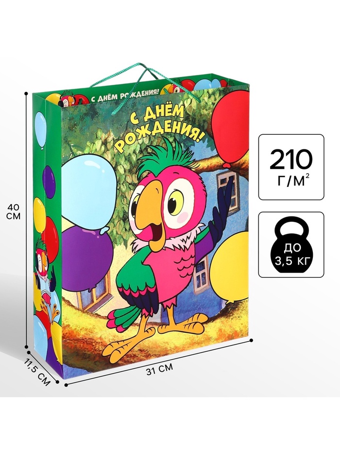 Пакет подарочный «С днём рождения», 31×40×11.5 см, упаковка, Попугай Кеша