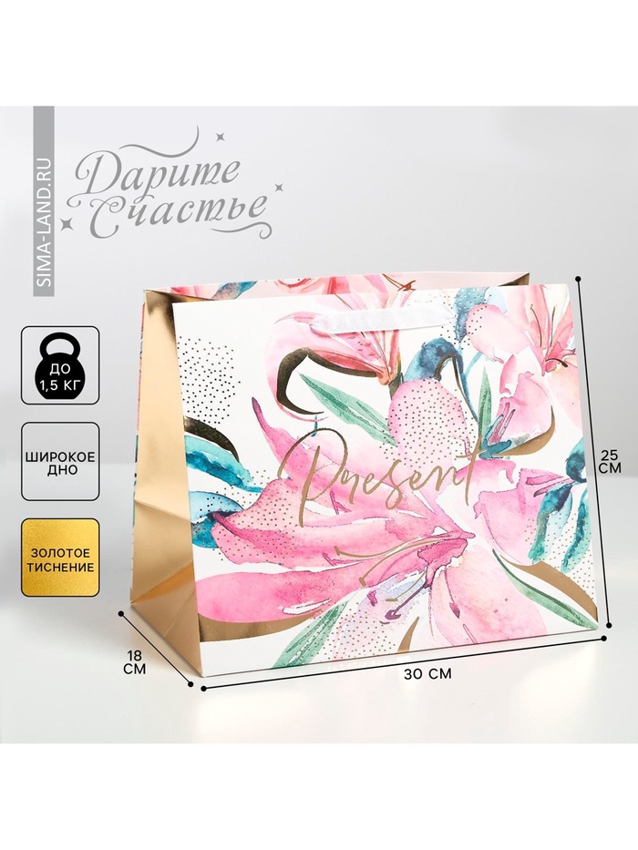 Пакет подарочный ламинированный, упаковка, «Present», 30.5 х 25.5 х 18 см