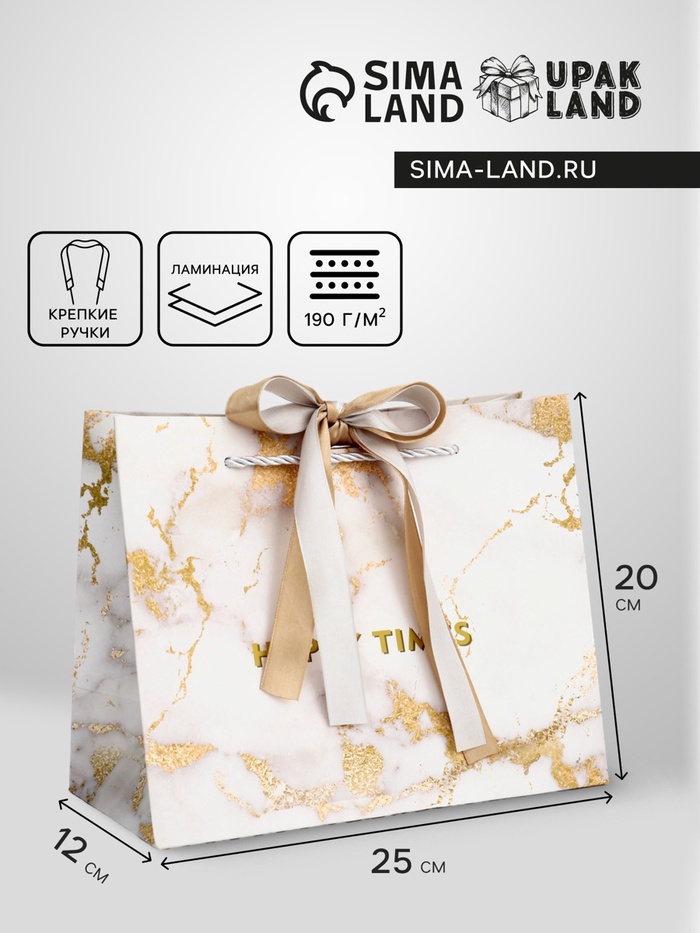 Пакет подарочный ламинированный «Мрамор»,белый, с бантиком, 25×20×12 см