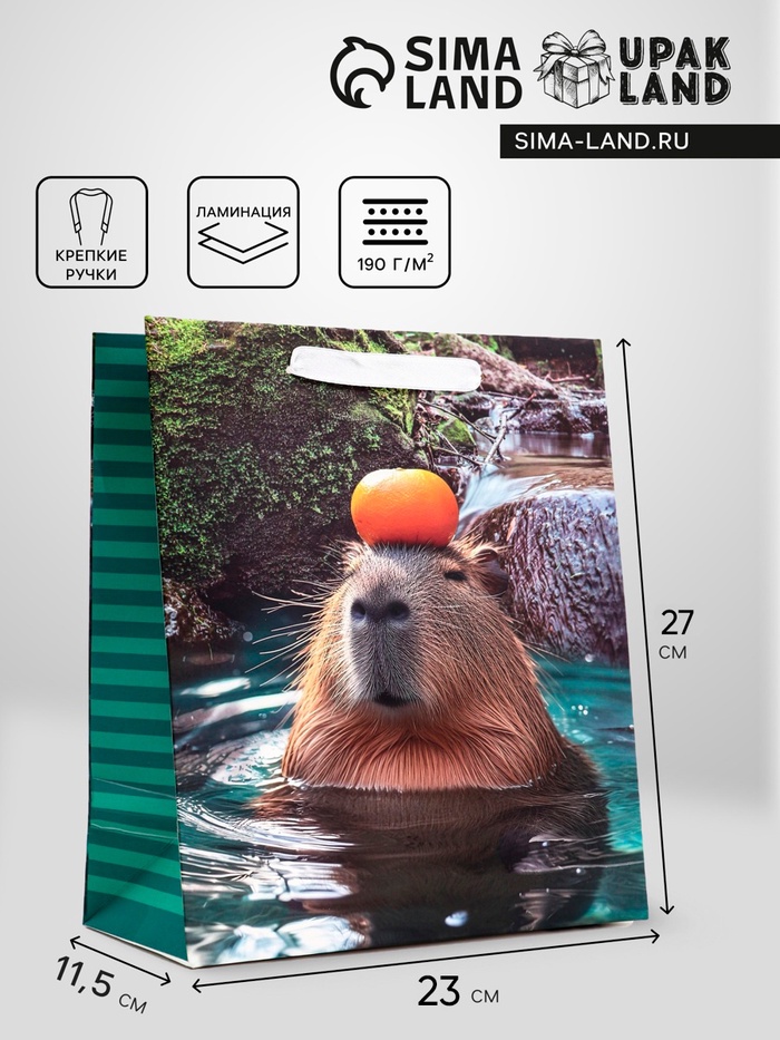 Пакет подарочный вертикальный «Капибара», 23×27×11.5 см