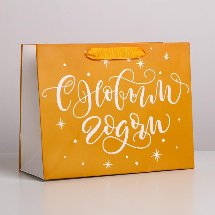 Пакет подарочный новогодний с лентой «С Новым годом», 13 х 19 х 9 см