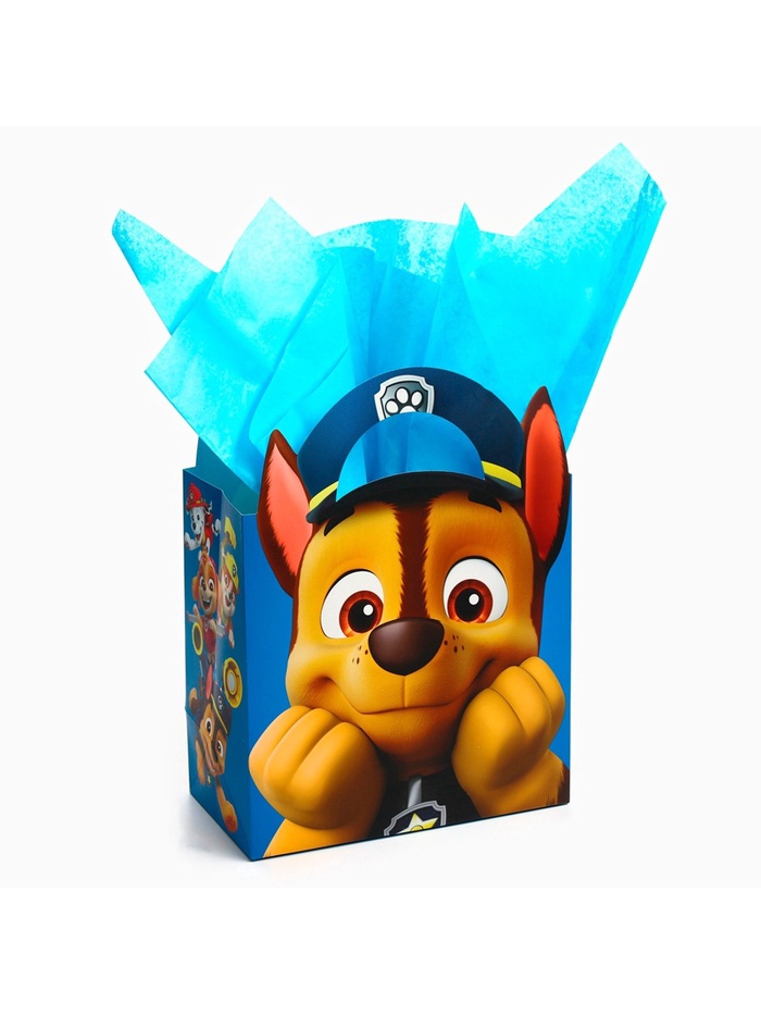 Пакет подарочный с упаковочной бумагой тишью, 22х22х12 см, Щенячий патруль