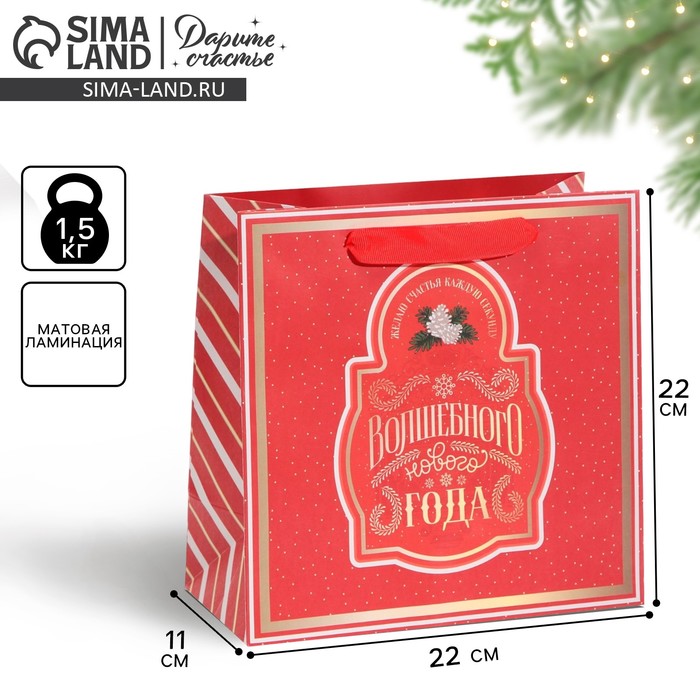 Пакет подарочный новогодний ламинированный квадратный «Волшебный праздник», 30 х 30 х 12 см