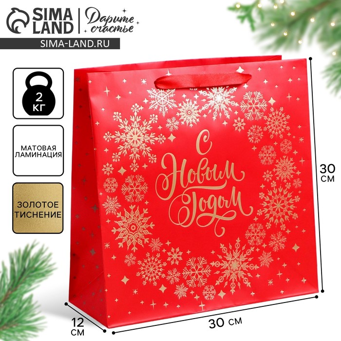 Пакет подарочный новогодний ламинированный квадратный «С Новым Годом!», 30 х 30 х 12см