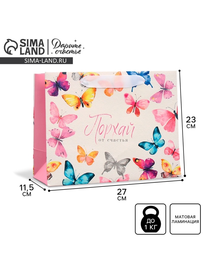 Пакет подарочный ламинированный, упаковка, «Порхай от счастья», ML 27 х 23 х 11.5 см