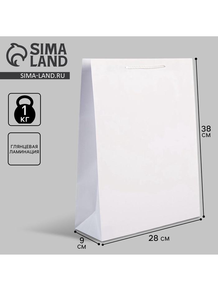 Пакет подарочный ламинированный, упаковка, «Белый», L 28 х 38 х 9 см