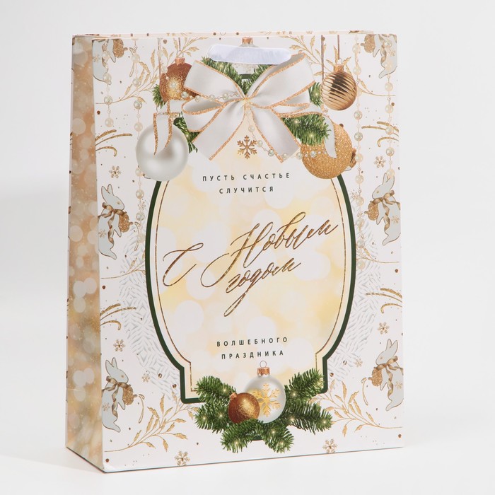 Пакет подарочный новогодний ламинированный «С новым годом», L 31×40×11.5 см