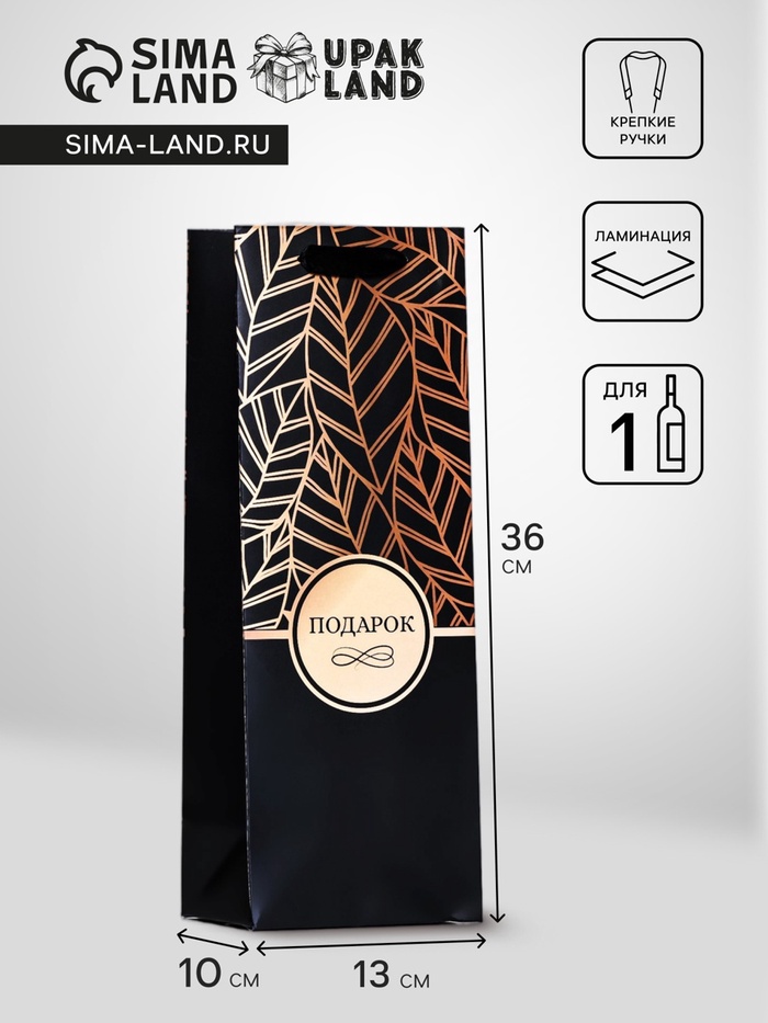 Пакет ламинированный под бутылку «Подарок»,13×36×10 см