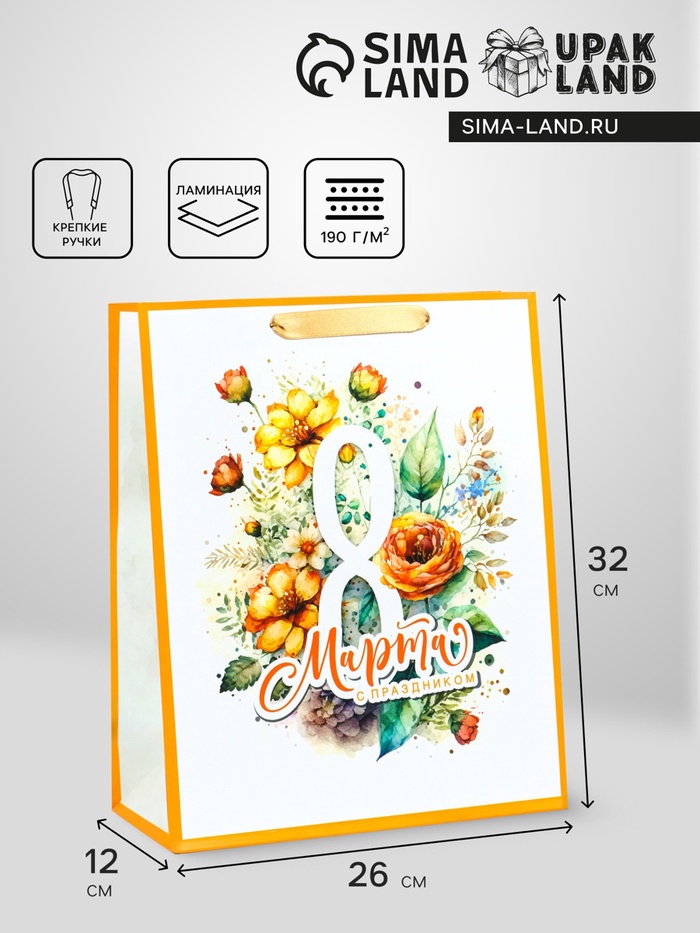 Пакет подарочный ламинированный вертикальный «С праздником», M 26×32×12 см