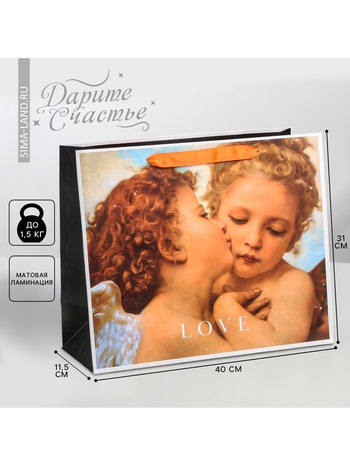Пакет подарочный ламинированный, упаковка, Love, L 40 х 31 х 11.5 см