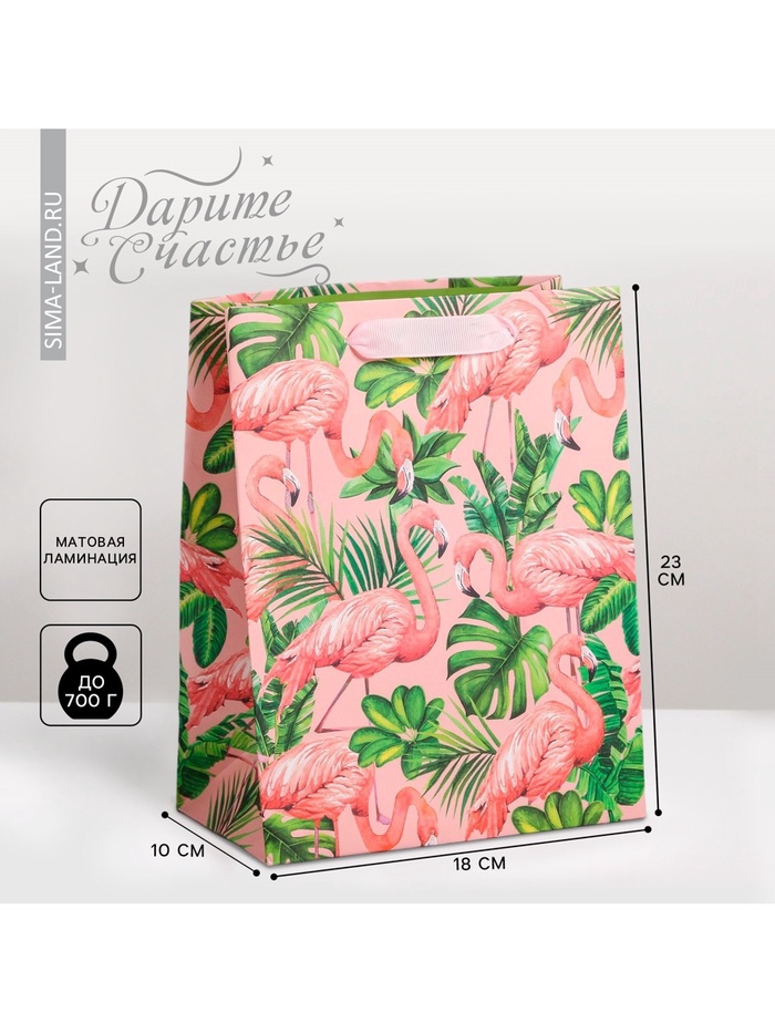 Пакет подарочный ламинированный, упаковка, «Тропики и фламинго», MS 18 х 23 х 10 см