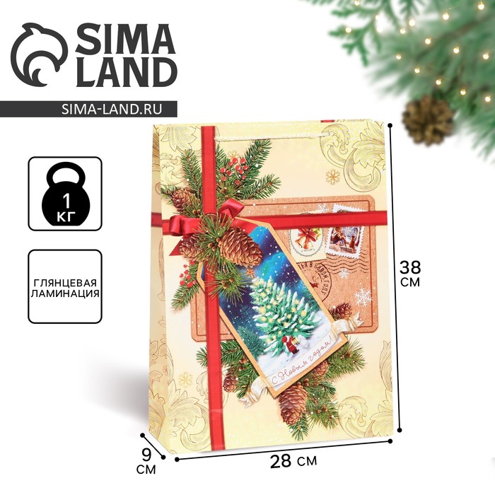 Пакет подарочный новогодний ламинированный «Почта Деда Мороза», ML 23 х 27 х 11.5 см