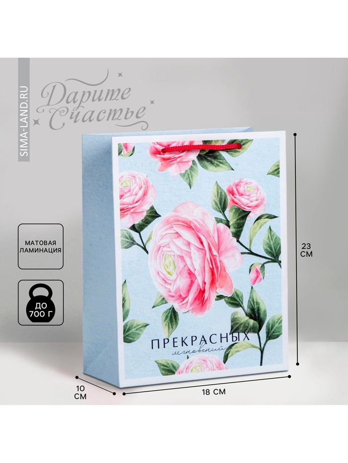 Пакет подарочный ламинированный, упаковка, «Прекрасных мгновений», MS 18 х 23 х 10 см